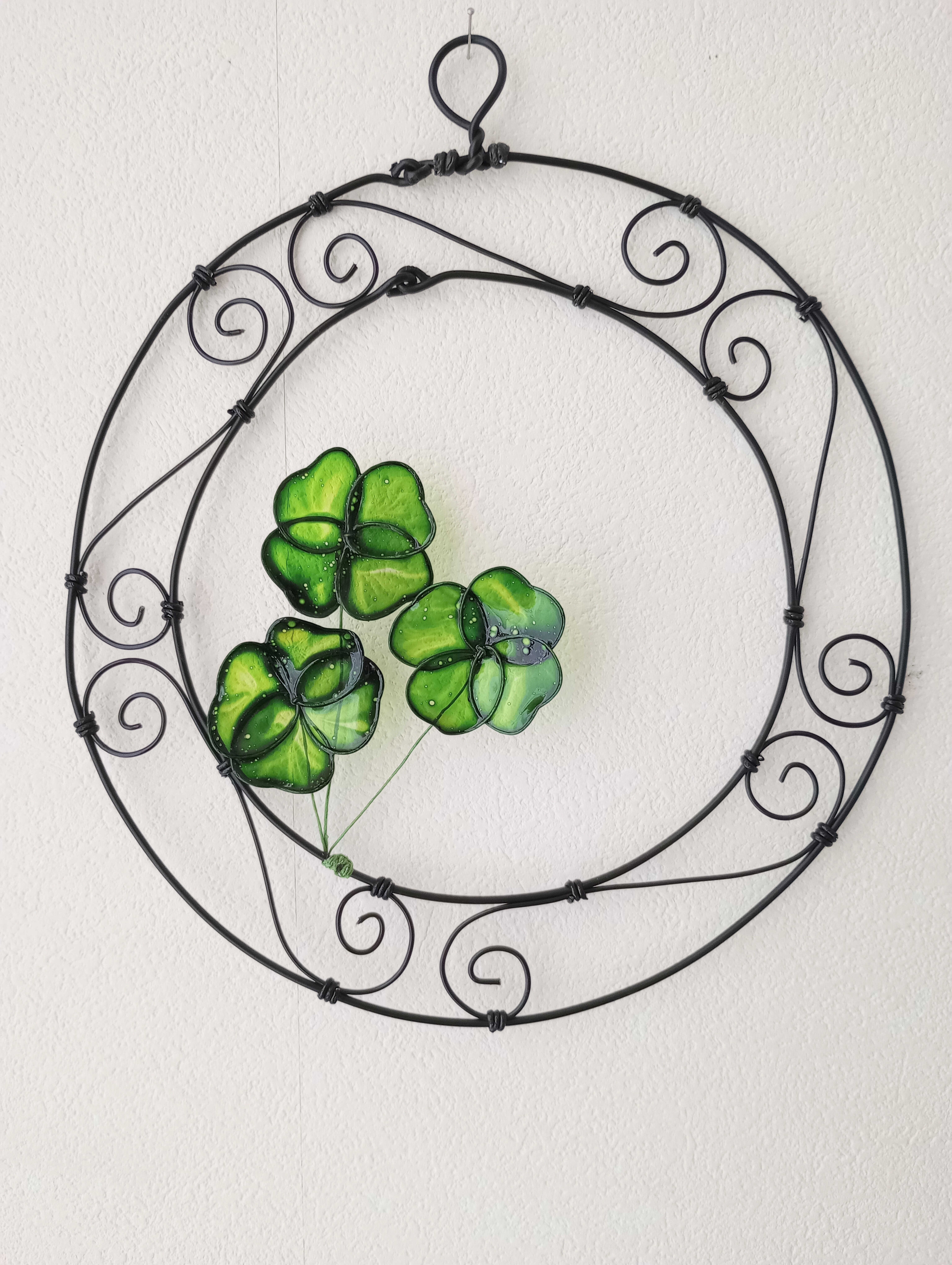 そのリースに幸運のシンボル“四つ葉のクローバー”をトッピングしました。
